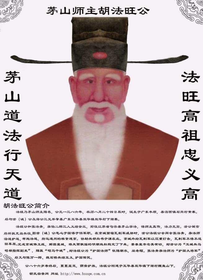 法旺胡公,嵩頭肇源。為人忠憨,法學茅山。